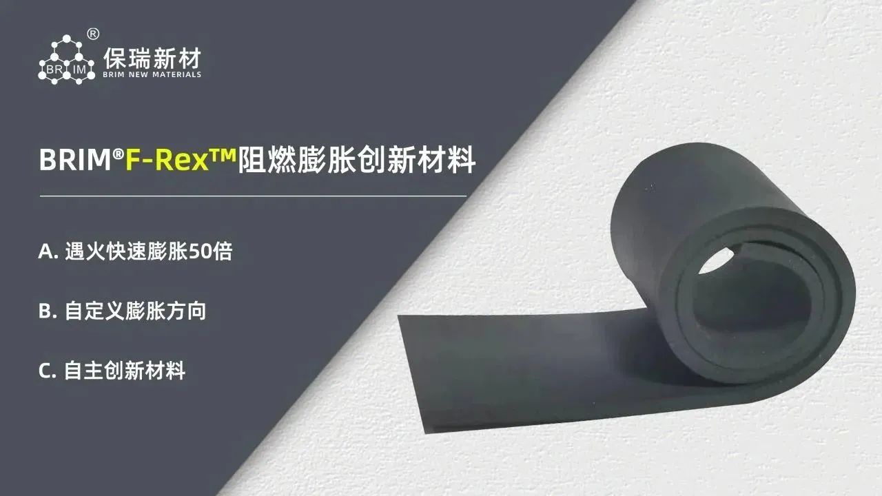 Brim®F-Rex?阻燃膨脹創(chuàng)新材料由高分子石墨復(fù)合而成。遇到高溫時(shí)石墨層間化合物會(huì)迅速氣化,形成氣壓使得石墨瞬間膨脹形成石墨蠕蟲,充塞縫隙,充當(dāng)火災(zāi)蔓延屏障并阻隔煙霧火焰。典型應(yīng)用于儲(chǔ)能,充電樁,軌道交通,電力線纜及高壓開關(guān)等行業(yè)。
